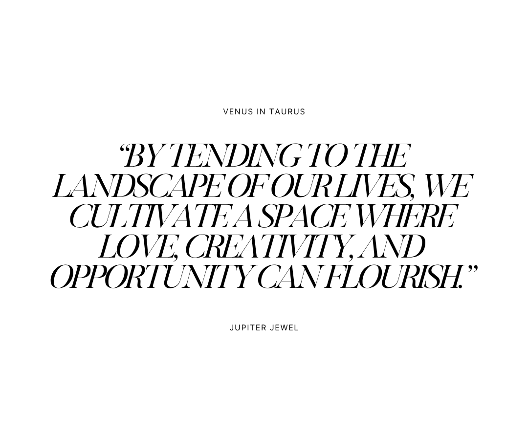 Venus doesn’t only govern the realm of connection; it is also the planet of materiality and acquisition. In unyielding Taurus, Venus reminds us that the fruit of our labor may ripen slowly, but when it does, it is twice as rewarding. Carrying the energetic signature of fixed earth, Taurus is the most enduring of all archetypes—the sign that reflects the stubborn, hardworking, and persevering aspects of our nature.
